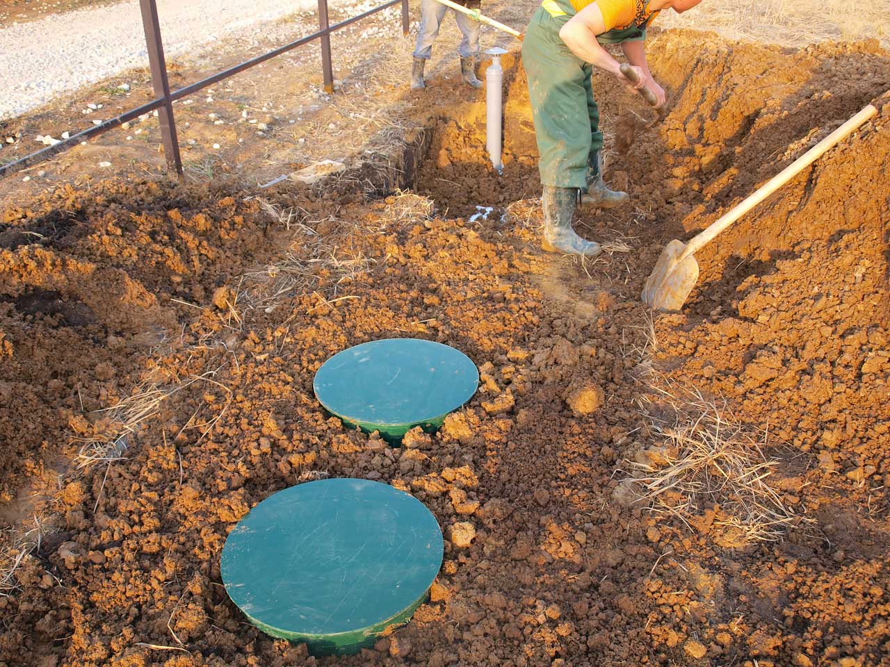 Траншея для труб должна быть правильной глубины. Во время монтажа септика для 10 человек придется столкнуться с несколькими видами труб: отводящими, подводящими и дренажными для фильтрационных полей. В зависимости от этого трубы закапываются на различную глубину.