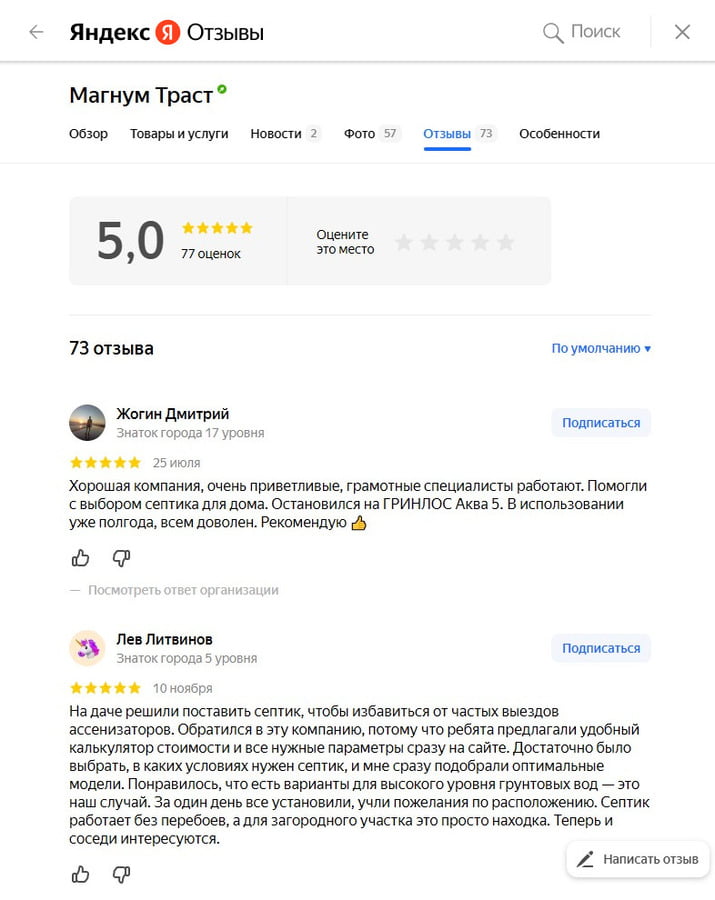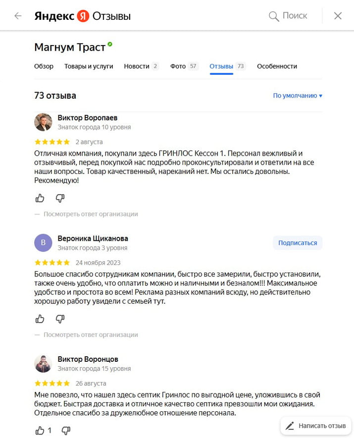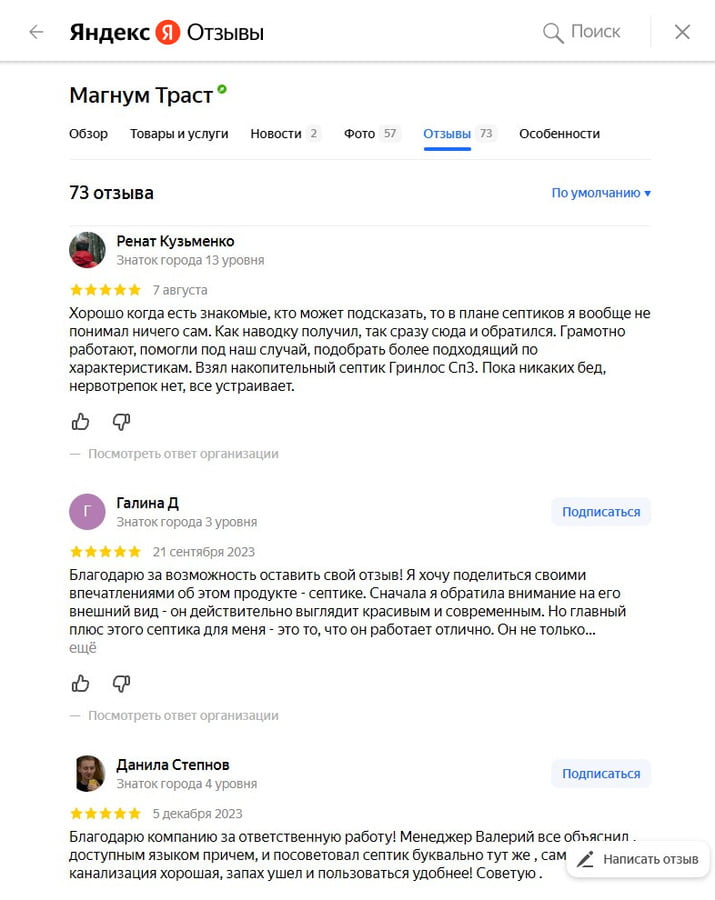 Отзывы о нас на Яндекс